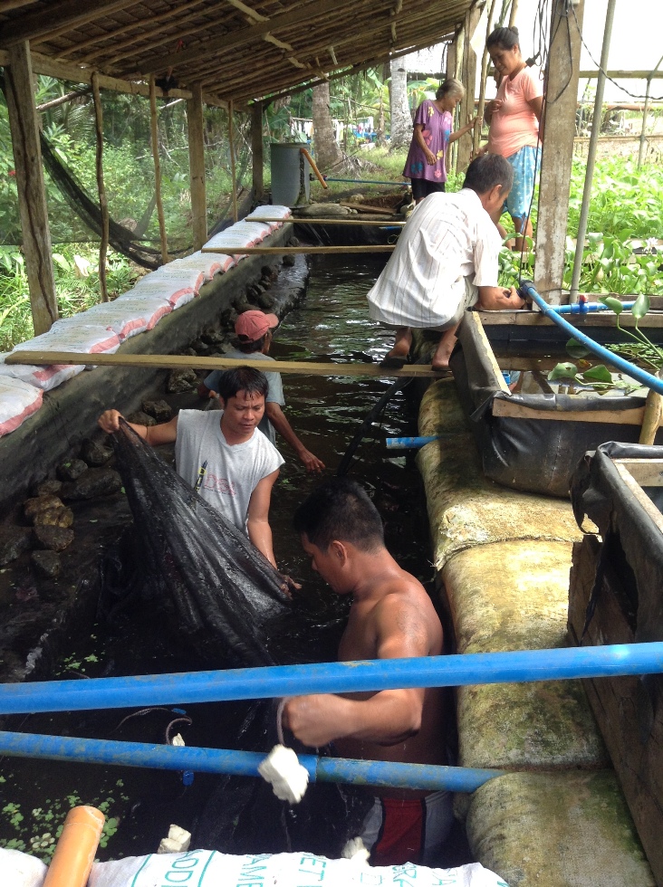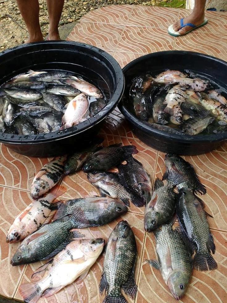 Es wurden mit grossmaschigen Netzen nur die groesten Fische aus der Aquaponikanlage gefischt. Wir waren alle sehr ueberascht, dass es insgesamt 15kg waren. Davon gab es 4 Fische ,die ein Gewicht von je ueber 1kg hatten. Ein Teil des Fangs wurde an unsere Mitglieder der Cooperative gerecht verteilt. 1,5kg wussten wir an einen Nachbarn im Dorf verkaufen,der unbedingt die Fische probieren wollte. Der groesste Anteil aber war die Grundlage fuer unser Weihnachtsfest der Cooperative zum Essen gab es natuerlich Reis,Gemuese aus unserem Garten, und Tilapia in verschiedenen Variationen. Kinilaw,(roh mit essig ,Zwiebeln und Chili) , gegrillt und gebraten in einer suess,sauren Sosse. Wie es bei uns so ueblich ist, wurden natuerlich alle Reste eingepackt und mit nach hause genommen. Es war ein sehr schoener Tag fuer uns alle. Ich hoffe , dass auch ihr ein froehliches und gesegnetes Weihnachtsfest hattet .