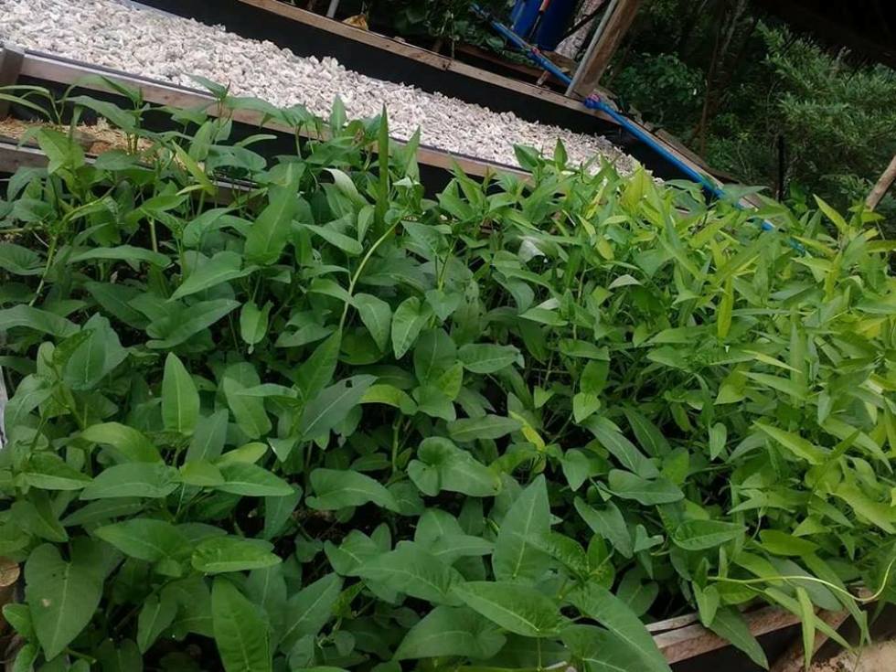 - Ein Pflanzbeet wurde mit Kangkong (Gemuese) bepflanzt