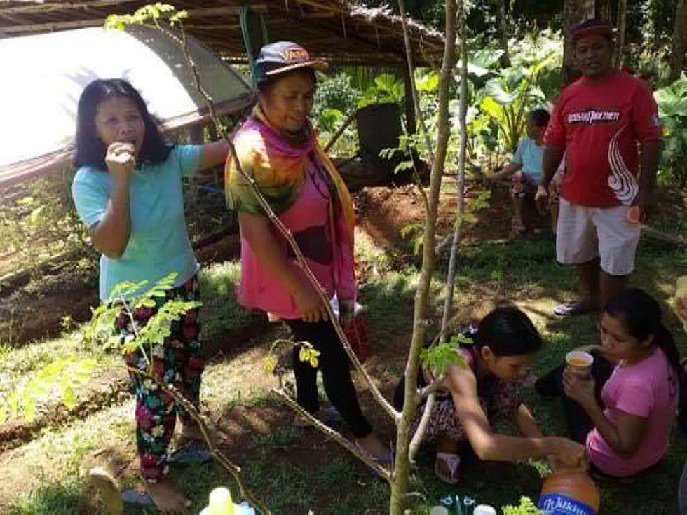 oder die Blätter pur essen. Einige Frauen berichteten auch schon, dass sie sich besser und kraftvoller fuehlen.Beim 2. Treffen haben wir das Thema Terra Preta durchgenommen. Meine Frau Marlyn hat den Frauen praktisch gezeigt, wie man Bukaschi herstellt, und dass die Holzkohle einen entscheidenden Anteil am Erfolg hat. Jeder hat dann einen Eimer mit Deckel bekommen um zu Hause selbst Terra Preta her zu stellen. Wir haben aber schon gehoert, dass nur wenig Bioabfaelle anfallen. Darum haben wir überlegt, dass sich einige Familien zusammen tun um eine groessere Tonne zu fuellen. Die muessen wir aber erst noch in Surigao besorgen .